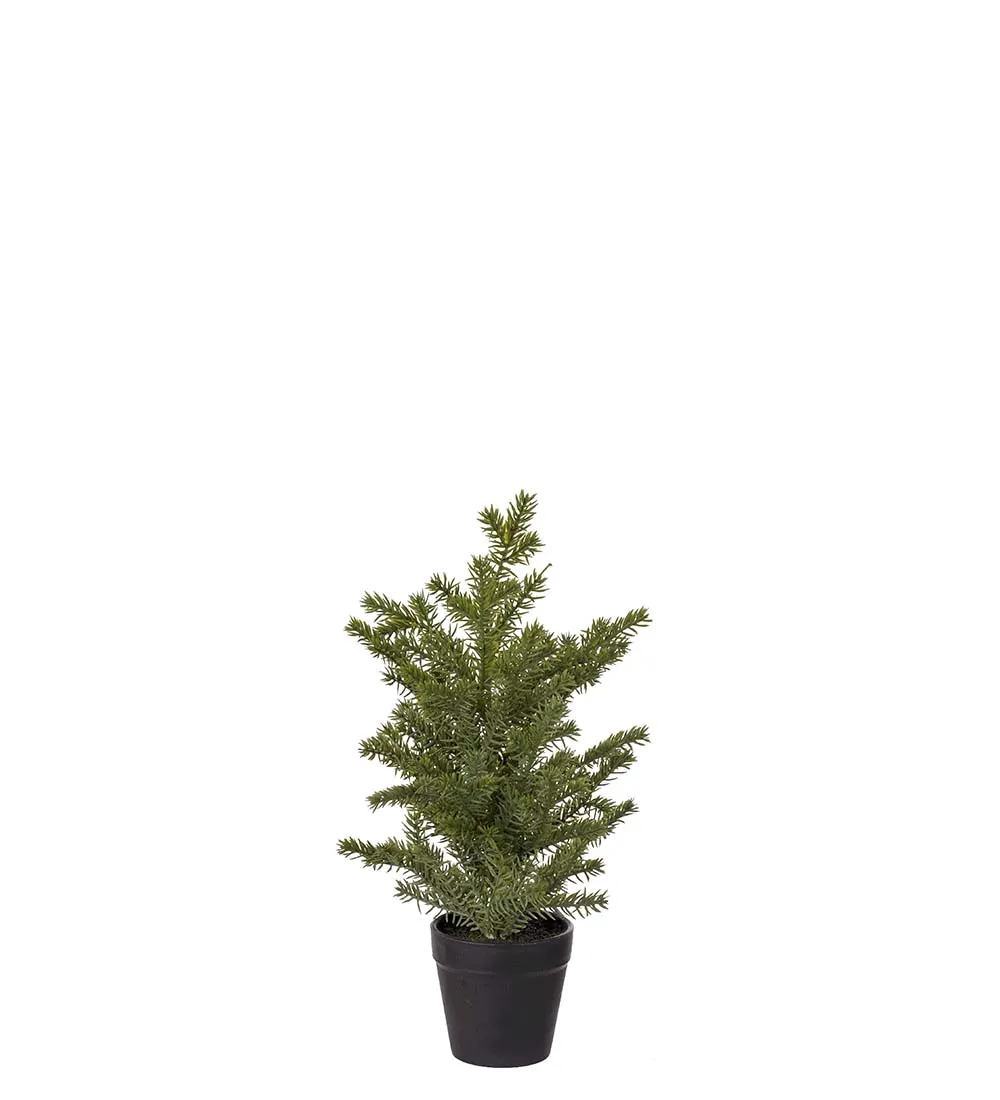 Suloisen pieni Mr Plantin havupuu tuo metsän vihreyden sisätiloihin ilman hoitoa. Aidon näköinen pieni kuusi on istutettu yksinkertaiseen mustaan muoviruukkuun. Se sopii täydellisesti pöydälle, hyllylle tai ikkunalaudalle. Havupuu luo kodikasta tunnelmaa etenkin talvikaudella, mutta on kaunis koriste myös ympäri vuoden. Korkeus 35 cm.