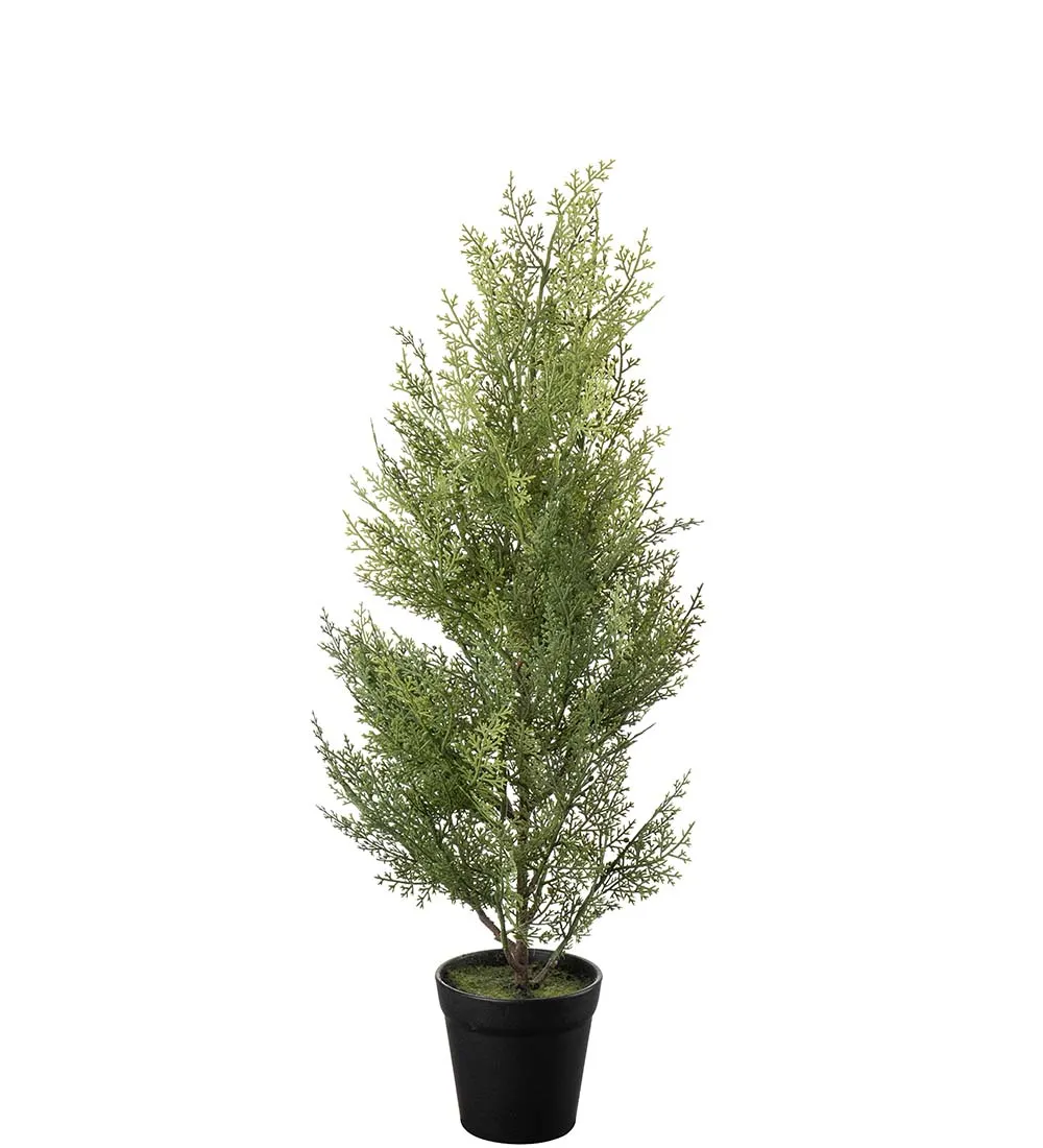 Mr Plantin sypressi ruukussa (65cm) on näyttävä ja aidonnäköinen viherkasvi, joka tuo raikasta vihreyttä kotiin, toimistoon tai julkiseen tilaan ilman kastelua ja hoitoa.Tekosypressi on helppo sijoittaa esimerkiksi eteiseen, olohuoneeseen tai parvekkeelle suojaisaan paikkaan. Musta ruukku tekee kasvista heti valmiin sisustuselementin, joka sopii niin moderniin kuin klassiseenkin tyyliin.