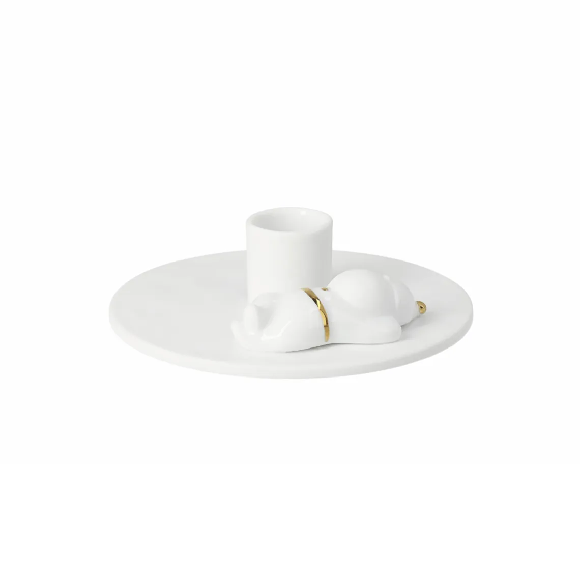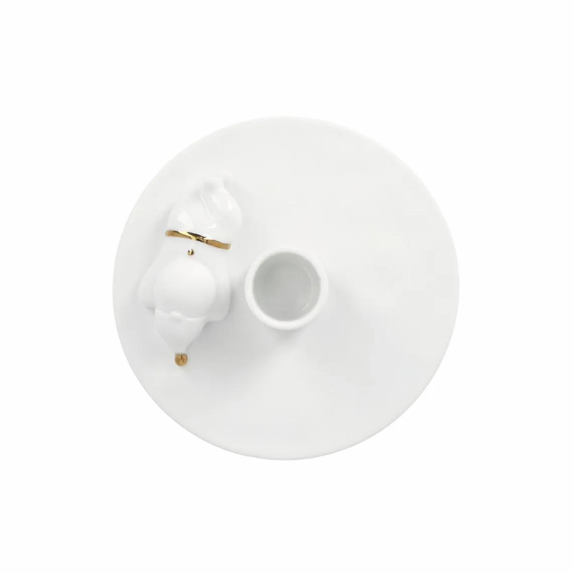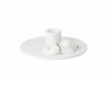 Räderin valkoinen kynttilänjalka on suloinen ja rauhallinen lisä joulun sisustukseen. Kynttilänjalan reunalle on asetettu pieni tonttukoriste, jonka kultaiset yksityiskohdat tuovat juhlan hehkua. Ajaton muotoilu ja laadukas posliini tekevät siitä kestävän ja tyylikkään koristeen, joka sopii täydellisesti joulupöytään, hyllylle tai lahjaksi.