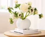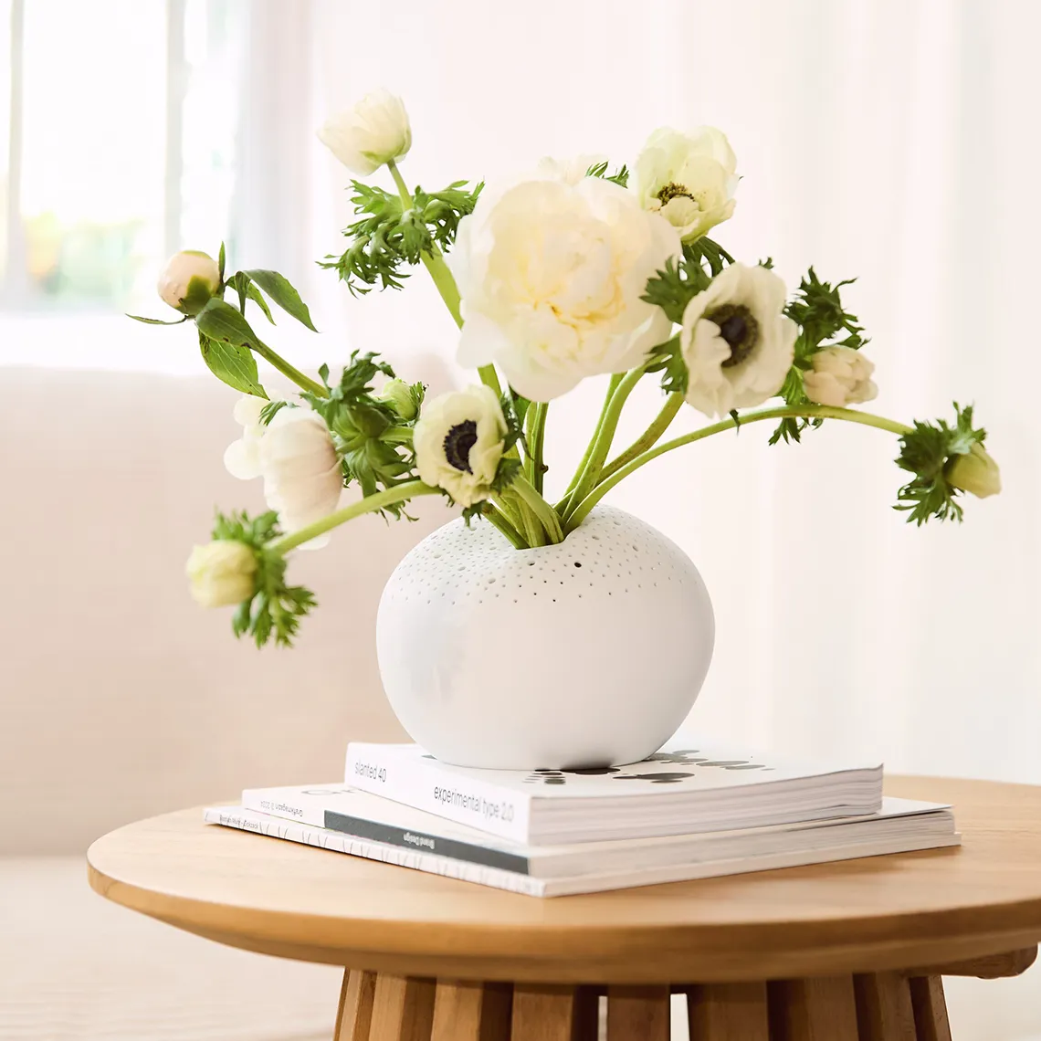 Tyylikäs ja harmoninen valkoinen maljakko, jossa yhdistyvät pehmeä muoto ja herkkä yksityiskohtaisuus. Maljakon pinnalla on pieniä reikiä, jotka tuovat valoa ja ilmavuutta sen muotoon. Pyöreä design tekee siitä näyttävän niin yksittäisenä sisustuselementtinä kuin kukkien kanssa. Sopii täydellisesti moderniin ja luonnolliseen sisustukseen. Kokeile laittaa ledvalot maljakon sisään, saat tunnelmallista valoa.