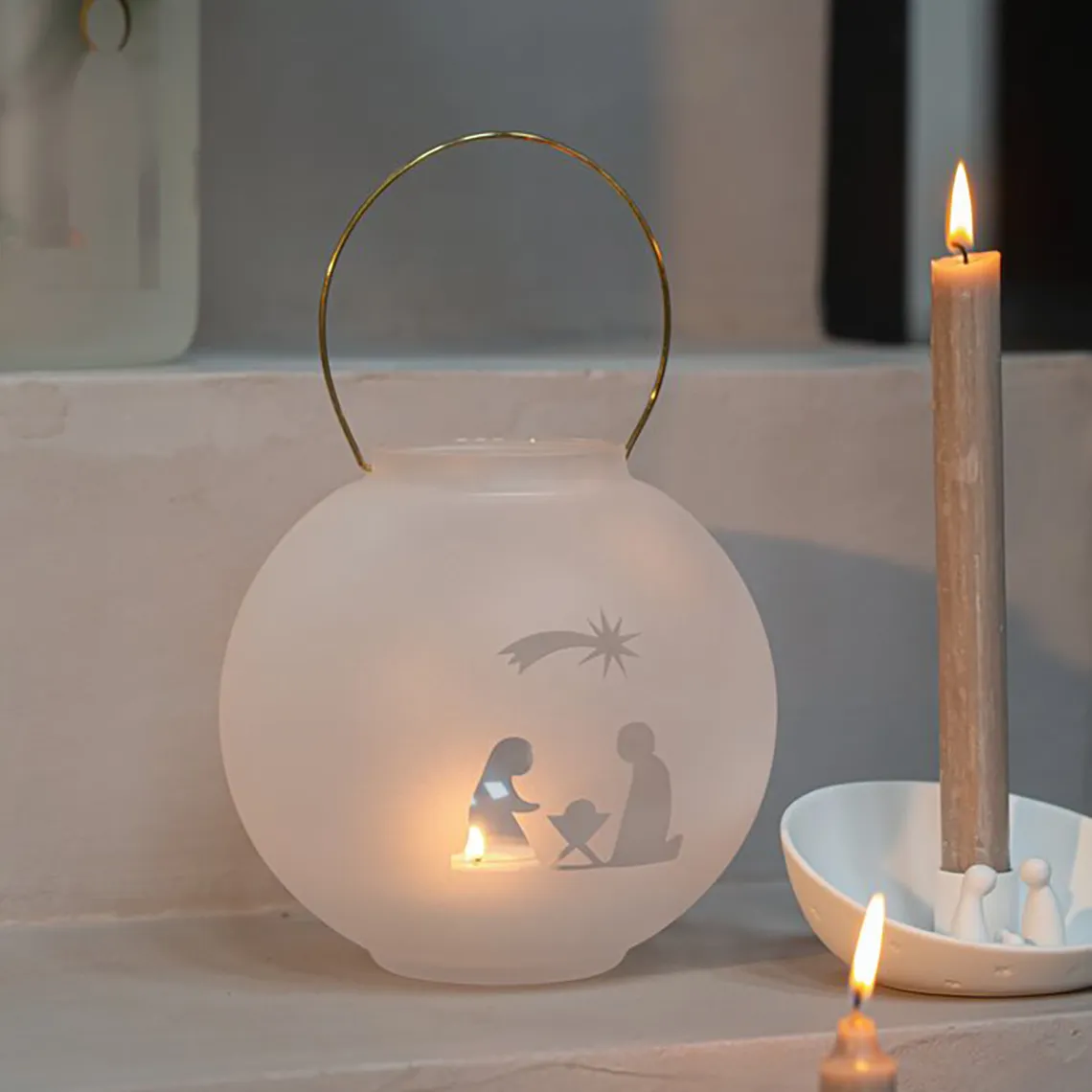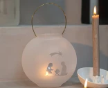 Räderin seimikoristeinen lyhty tuo joulun pyhän tunnelman kauniisti esille. Huurretusta lasista valmistetun lyhdyn läpi loistaa lämmin valo, joka paljastaa herkän seimiaiheisen siluetin. Kultainen kantokahva viimeistelee tyylikkään ilmeen. Tämä lyhty sopii täydellisesti osaksi joulun sisustusta hyllylle, ikkunalle tai pöydälle.