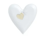 Räderin kaunis sydämenmuotoinen vati on ajattoman tyylikäs sisustusyksityiskohta. Valkoista posliinia oleva vati hurmaa pehmeillä linjoillaan ja kultaisella sydänkoristeellaan, joka on sidottu valkoisella narulla. Sopii täydellisesti pienten korujen, avainten tai makeisten säilytykseen. Tai lahjaksi rakkaalle!