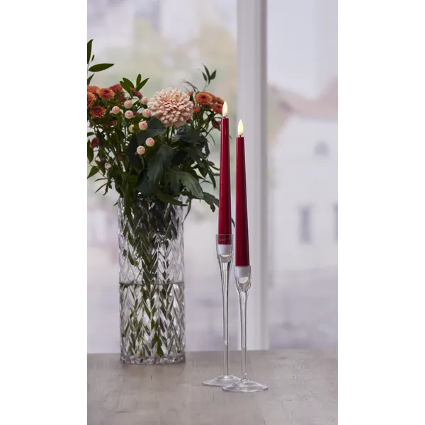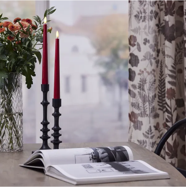 Star Tradingin Candy LED-kynttilä luo lämpimän ja elegantin tunnelman ilman avotulta. Tummanpunainen sävy ja hoikka muoto tekevät kynttilästä kauniin yksityiskohdan kattaukseen, juhlapöytään tai talven sisustukseen. Elävästi lepattava LED-liekki valaisee pehmeästi ja tuo aidon kynttilän tunnelman turvallisesti. Kätevän ajastintoiminnon ansiosta valo syttyy automaattisesti kuudeksi tunniksi ja sammuu itsestään.
