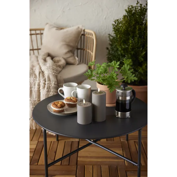 Star Tradingin LED-kynttilä on kauniin harmaanruskea. Se tuo lämpimän valon ja aidon kynttilän tunnelman niin sisälle kuin ulos. Kynttilässä on realistinen liekki ja pinnassa hienovarainen kiilto, joka muistuttaa sulanutta vaha. Valmistettu säänkestävästä muovista, joten se sopii erinomaisesti myös ulkokäyttöön. Paloaika paristoilla on noin 1000 tuntia. Ajastintoiminto tekee käytöstä helppoa ja huoletonta.
