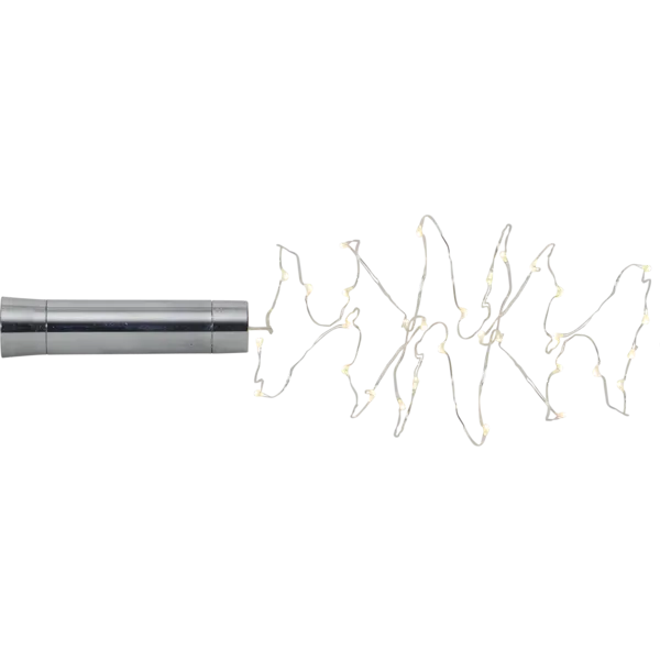 Star Tradingin LED-valosarja pullon sisään on helppo ja näyttävä tapa luoda tunnelmallinen koristevalo. Ohut valolanka sujautetaan tyhjään lasipulloon ja hopeanvärinen korkki jää siististi pullon suulle.Valosarjaa voit käyttää myös moneen muuhun tarkoitukseen. Lämminsävyiset LED-valot loistavat kauniisti ja luovat pehmeää, kimaltavaa valoa esimerkiksi juhlapöytään, ikkunalle tai hyllylle. Paristokäyttöisenä valosarja on helppo sijoittaa minne tahansa!