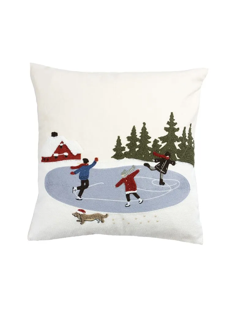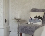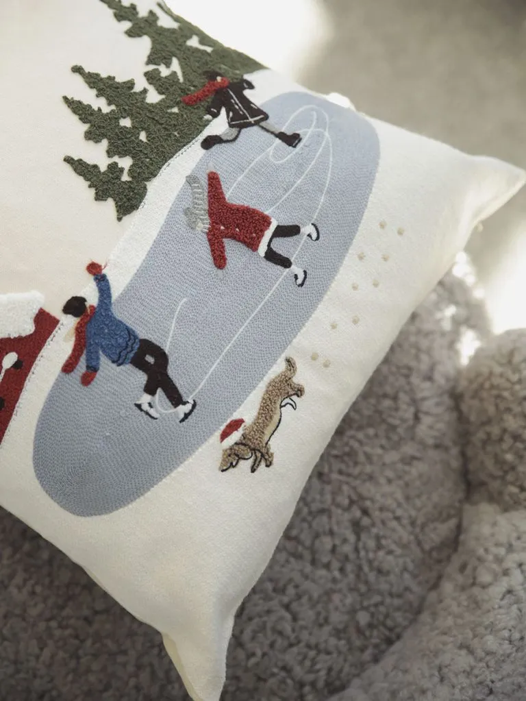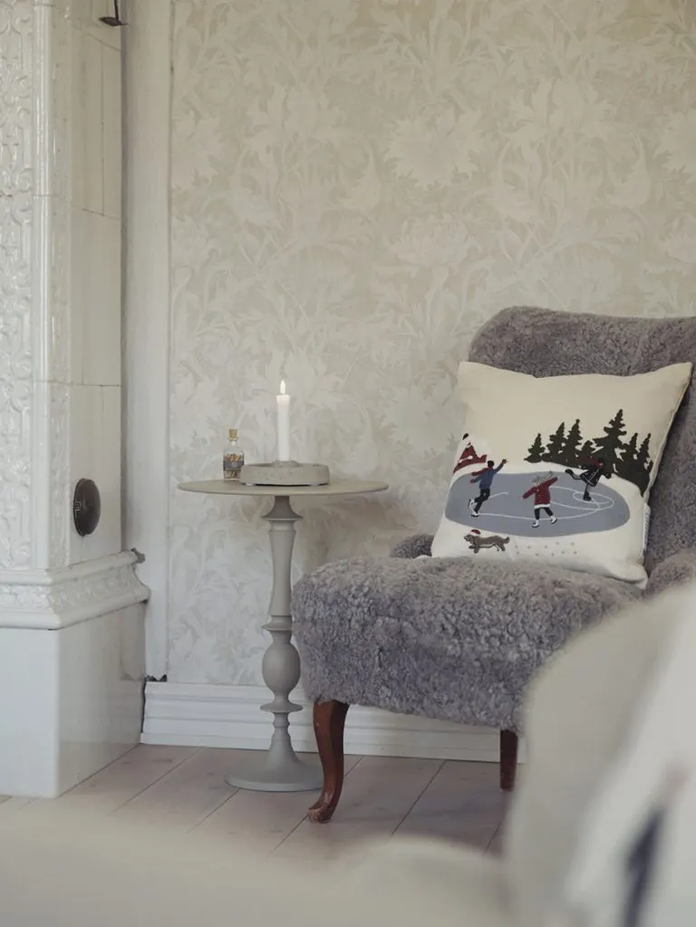 Svanefors Kate -tyynynpäällinen on ihastuttava lisä talven ja joulun ajan sisustukseen. Etupuolella on kaunis brodeerattu talvinen luistelukohtaus: pieni mökki, kuusia, luistelevat hahmot ja tonttulakkinen koira. Yksityiskohdat on toteutettu pehmein värein ja huolellisesti viimeistellyin tikkauksin. Taustapuoli on yksiväristä puuvillaa. Tyynynpäällinen tuo sohvalle tai nojatuoliin lämpöä ja iloista talvitunnelmaa.